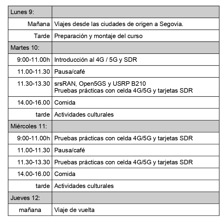 Durante la semana del 9 al 12 de junio realizamos un curso de formación sobre 5G basado en dispositivos SDR y sistemas open source.